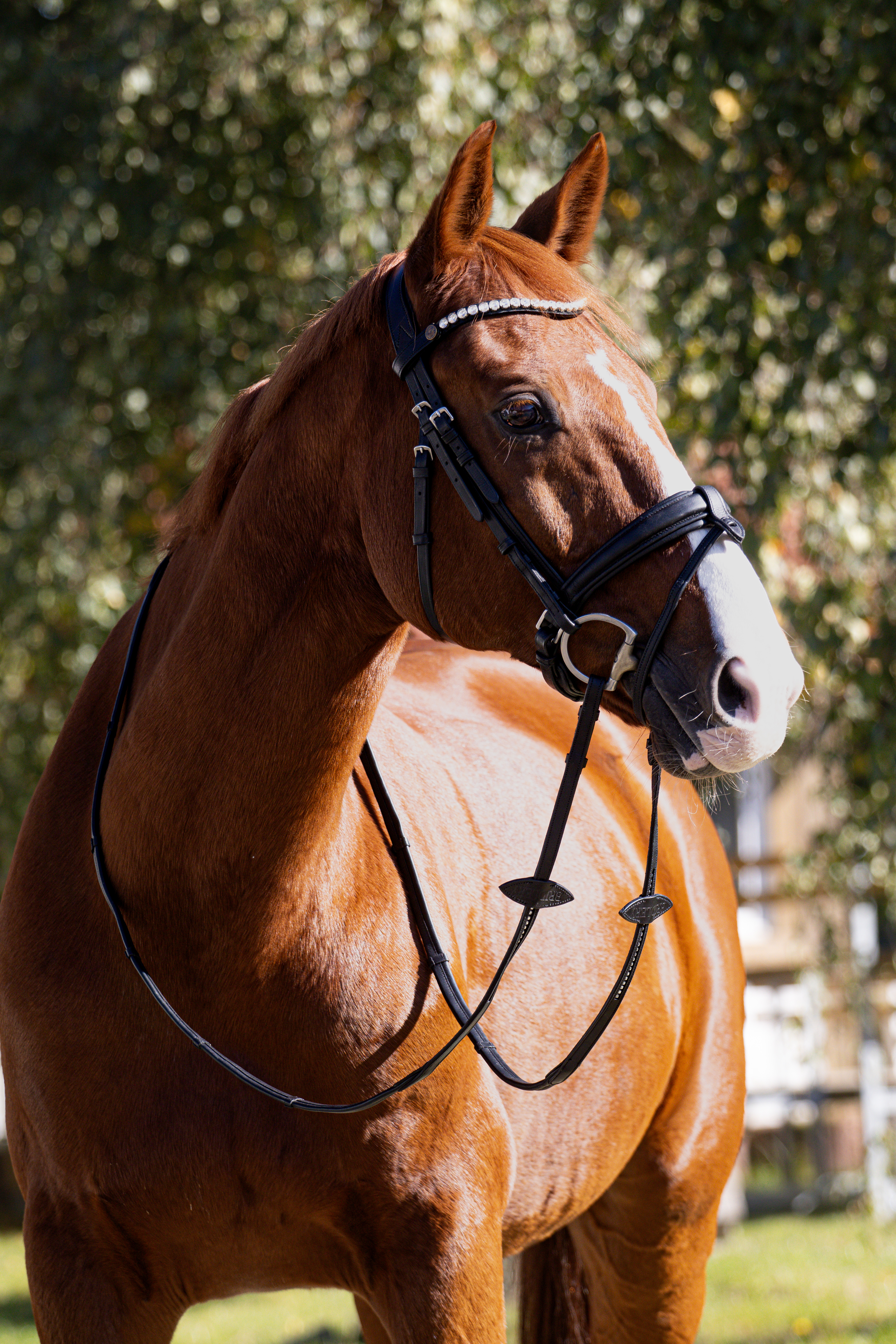 Der Nasenriemen besteht aus besonders weichem Softleder, das sich perfekt an die Form des Pferdekopfes anschmiegt. Durch die zusätzliche Polsterung wird der Druck optimal verteilt – für höchsten Komfort und ein ruhiges, zufriedenes Pferdemaul.