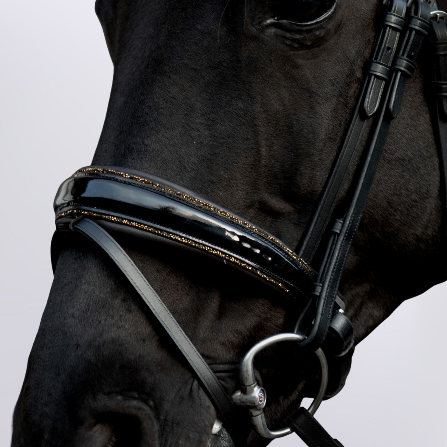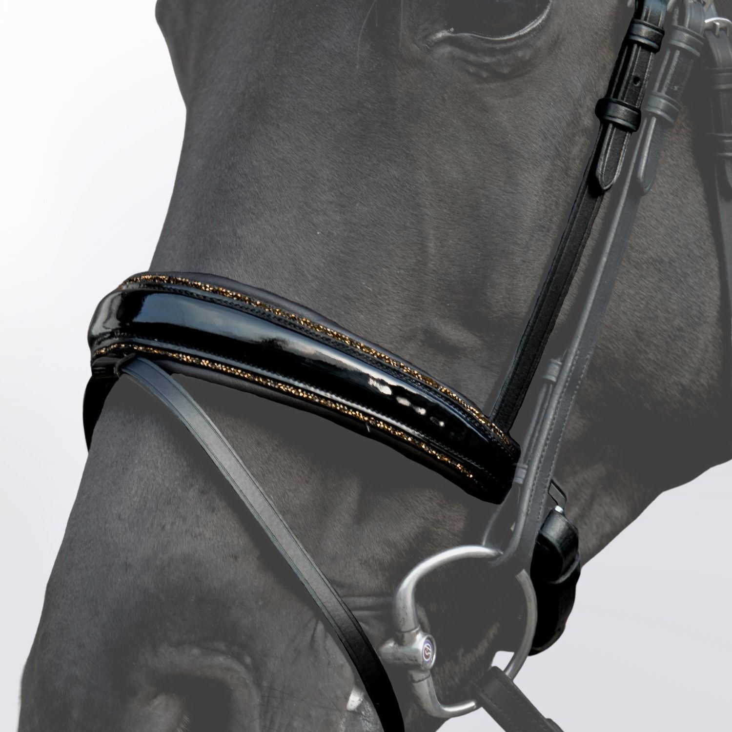 Erlebe Dressur auf höchstem Niveau mit unserem exklusiven Nasenriemen Uta Gräf. In Zusammenarbeit mit der renommierten Dressurreiterin Uta Gräf entwickelt, besticht dieser Nasenriemen durch seine schlichte, gerade Form und das matte Finish. Hergestellt aus pflanzlich gegerbtem, englischem Leder, bietet er nicht nur Eleganz, sondern auch höchsten Tragekomfort für dein Pferd.
