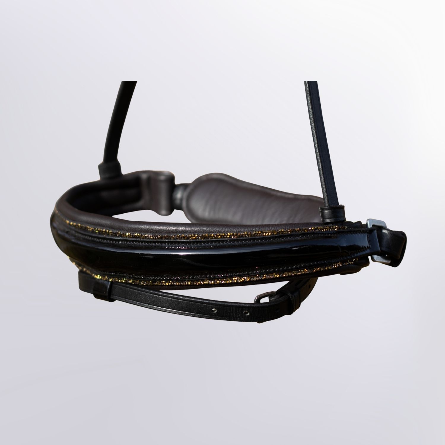 Der Nasenriemen Uta Gräf ist mit einem einseitigen, englischen Verschluss ausgestattet, der jedoch durch ein zusätzliches Polster für extra Komfort sorgt. Das Besondere: Unsere "unsichtbare Sperrriemenschlaufe" ermöglicht eine rückstandslose Entfernung des Sperrriemens, sodass du selbst entscheiden kannst, ob du mit oder ohne reiten möchtest. Entdecke die perfekte Balance zwischen Tradition und Innovation für eine harmonische Reiterfahrung.