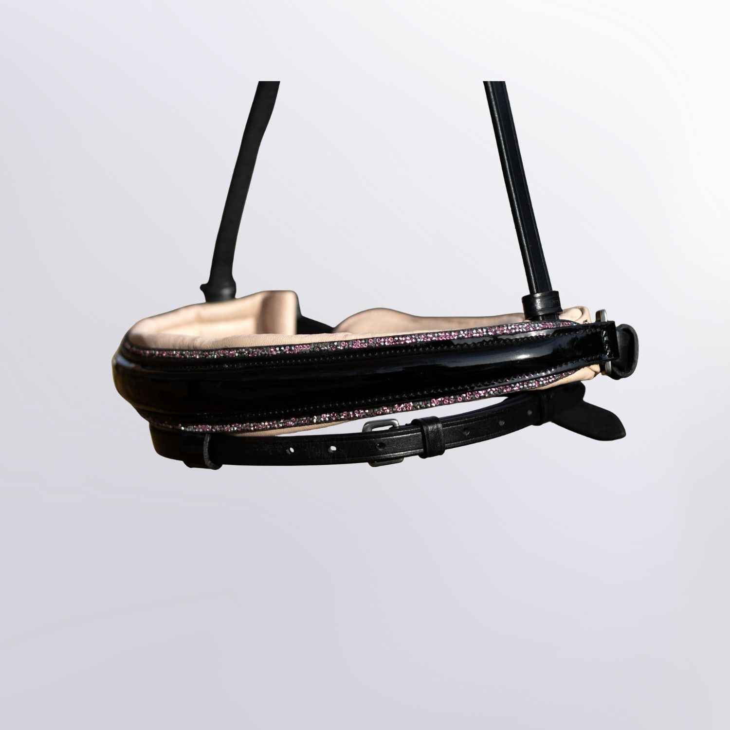 Der Nasenriemen Uta Gräf ist mit einem einseitigen, englischen Verschluss ausgestattet, der jedoch durch ein zusätzliches Polster für extra Komfort sorgt. Das Besondere: Unsere "unsichtbare Sperrriemenschlaufe" ermöglicht eine rückstandslose Entfernung des Sperrriemens, sodass du selbst entscheiden kannst, ob du mit oder ohne reiten möchtest. Entdecke die perfekte Balance zwischen Tradition und Innovation für eine harmonische Reiterfahrung.
