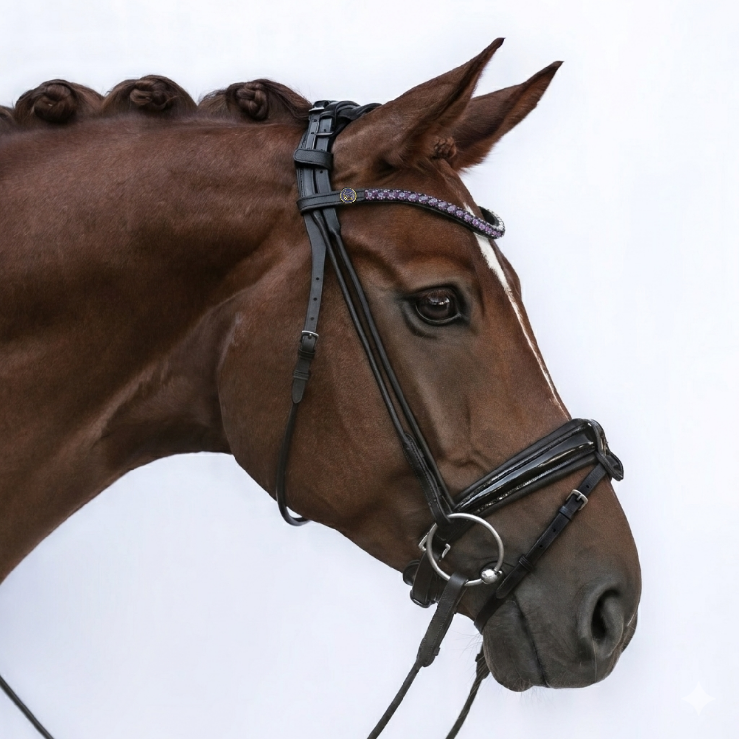 Produktinformationen "Stirnriemen Amethyst Braun Warmblut"